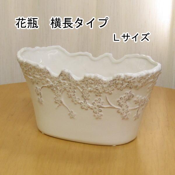 花瓶/花器 陶器 白 FLOWER LINE 横長Lサイズ :120-567:プロヴァンスの風 Yahoo!店 - 通販 - Yahoo!ショッピング